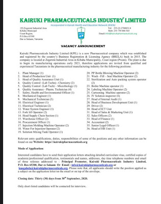 - New Job Opportunity at RAISSA Company Ltd Tanzania...